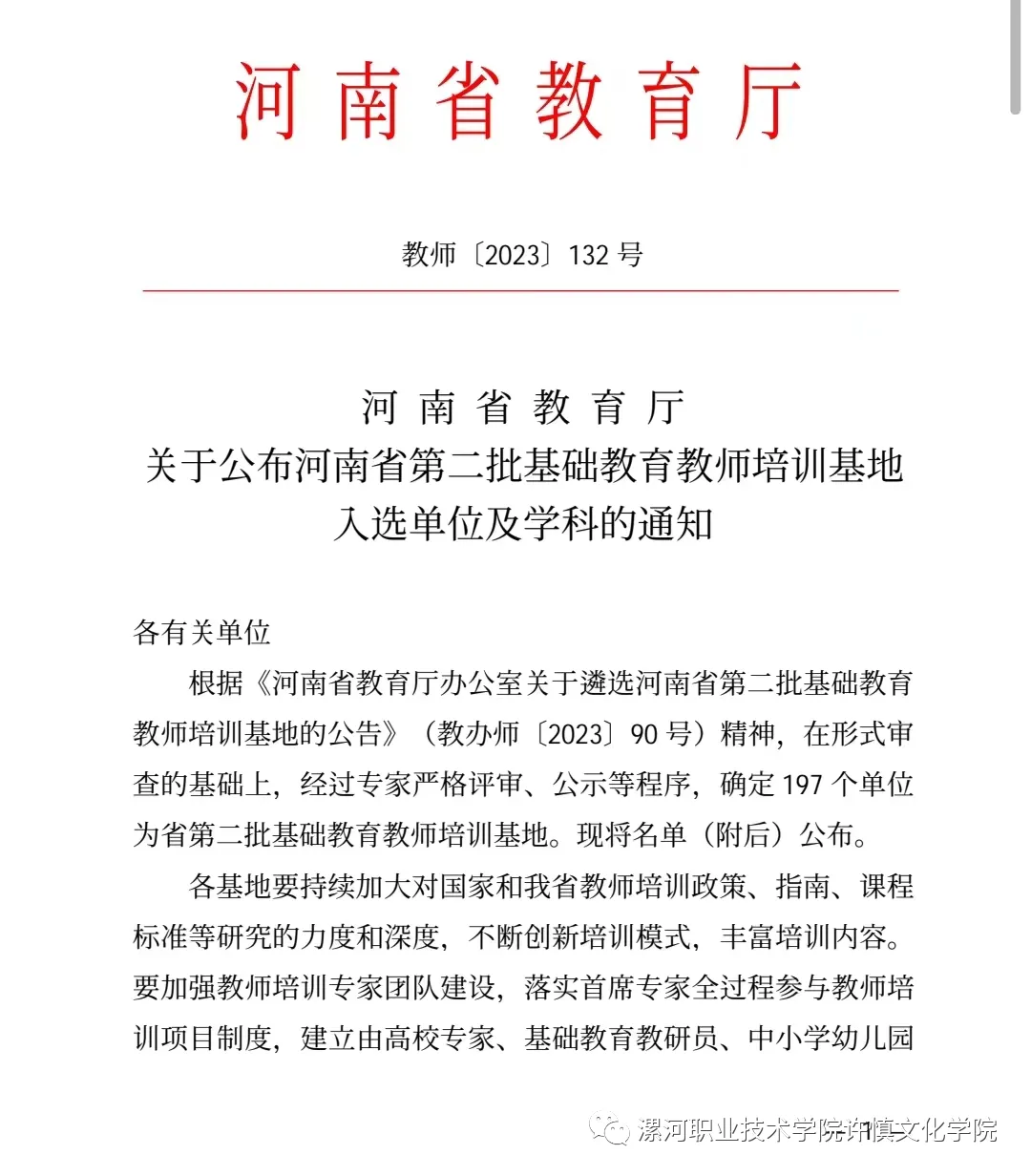 近日,河南省教育厅印发《关于公布河南省第二批基础教育教师培训基地入选单位及学科的通知》(教师[2023] 132号),太阳成tyc7111cc许慎文化学院团队申报的学科“书法(书法教育)书法(甲骨文)”成功入选。
