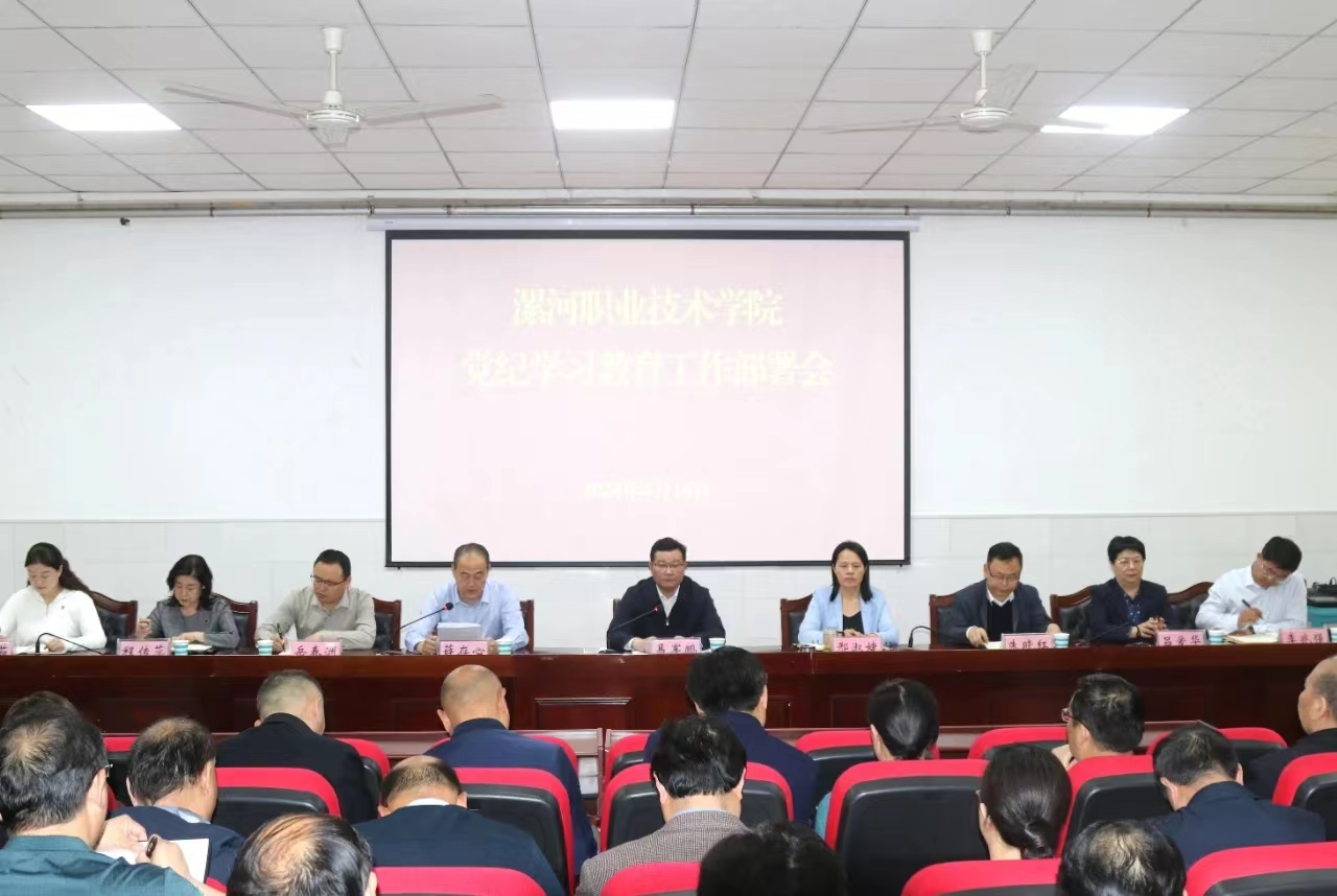 易军鹏强调,一要提高政治站位,切实增强开展学习教育的思想自觉、行动自觉。开展党纪学习教育是深入学习贯彻习近平总书记关于党的自我革命重要思想的必然要求,是加强党的建设、推动全面从严治党向纵深发展的重要举措,是确保学院高质量发展行稳致远的重要举措,切实把思想和行动统一到中央决策部署和省委、市委工作要求上来,深刻认识学习教育的重要意义,深刻理解学习教育的目标要求,深刻把握学习教育的方式方法,扎实开展好党纪学习教育工作。二要坚持统筹兼顾,推动学习教育往深里走、往实里走。全面落实党纪学习教育各项工作安排,抓准抓好学习教育与主责主业深度融合,坚持把开展学习教育与贯彻落实习近平总书记重要讲话精神相结合、与全面融入现代化漯河“三城”建设相结合、与推动学院高质量发展相结合、与问题整改相结合,把党员干部焕发出来的热情转化为攻坚克难、干事创业的动力,奋力推动学院“单项工作争第一、整体工作创先进”。三要严格标准要求,确保学习教育扎实开展、取得实效。压实各级责任,把开展党纪学习教育作为重要政治任务,迅速部署落实,强化责任落实;抓实基层学习,准确把握开展党纪学习教育的重点内容,铸牢遵规守纪思想之魂;坚持从严从实,以良好作风开展党纪学习教育,防止形式主义;强化督促指导,有效传导压力,确保党纪学习教育高标准开展、高质量完成,着力营造持久风清气正的政治生态、干事创业的良好环境。