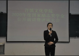 为充分发挥党总支对学生工作思想引领作用,营造“三全育人”校园氛围,激励学生勤奋学习、积极上进、德智体美全面发展。9月25日下午,许慎文化学院在3701教室隆重举办“2020年国家励志奖学金公开演讲暨评审大会”。许慎文化学院院长张彦鸽、党总支书记寇槐花出席评审大会,学院领导班子全体成员、教研室主任、专业负责人、全体辅导员担任此次评审大会评委。同时参加大会的还有19级各专业学生代表100多名同学。