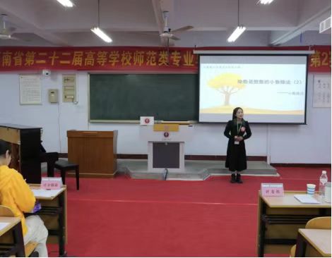 我院高度重视此次比赛,要求师范教育专业群精心组织备赛工作。各二级院系师范专业备赛组选拔优秀选手开展备赛,并邀请一线名师与专业骨干教师共同组建指导团队,有针对性地对参赛选手进行精心指导。师范教育专业群在教务处和督导室支持下组建评委组,按照大赛规程组织了校内初赛和复赛,推荐了一批优秀选手参加省赛。应用外语与国际教育系(许慎文化学院)小学数学学科参赛选手陈烨同学在繁忙的课程学习、教学实习、升学备考及招聘考试之余积极参加大赛备赛,在马宁老师指导下,深入研读比赛内容、精心撰写教学设计,制作高质量参赛课件,做到了精心、高效备赛,并在系内和教研室进行多次磨课、试讲,教学技能有很大提升,在院级复赛中荣获第一名的好成绩,被学院推荐参加省教育厅组织的现场比赛。在10月25日-27日由河南省教育厅主办、安阳师范学院承办的河南省第二十二届高等学校师范类专业毕业生教学技能现场比赛中,我院选手陈烨同学教学目标明确,教学重点突出,教学思路清晰,教学用语准确,教态亲和,教法得当,教学设计贯穿新课标理念,对教材理解深刻,获得了现场评委的一致好评。