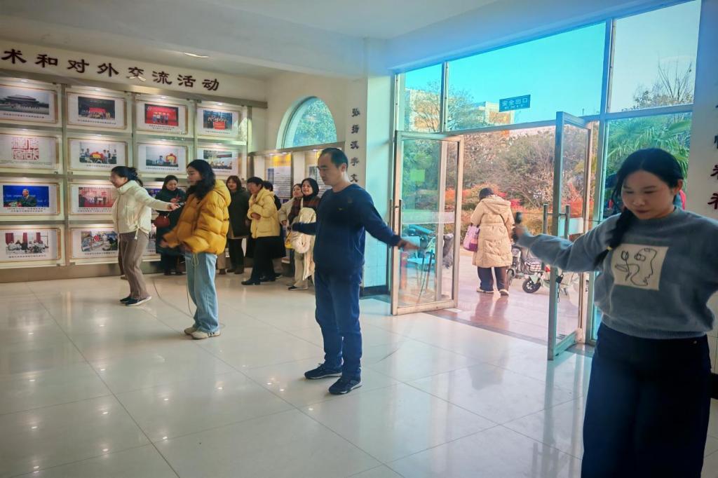 12月31日下午4:30应用外语与国际教育系全系在职教职工在太阳成tyc7111cc3号教学楼一楼大厅进行跳绳比赛,全系在职教职工在3号楼教学楼一楼大厅集合后,系部领导进行活动开场致辞和规则说明,教职工们按照活动安排,共分为5组举行了跳绳比赛。在比赛中,选手们各显神通,展现出高超的跳绳技巧,双脚快速交替,跳绳在空中划出一道道流畅的弧线,口号声、欢笑声交织在一起,现场气氛热烈非凡。在跳绳比赛结束后进行放松活动,系部领导举行颁奖仪式并颁发活动纪念品和总结发言。