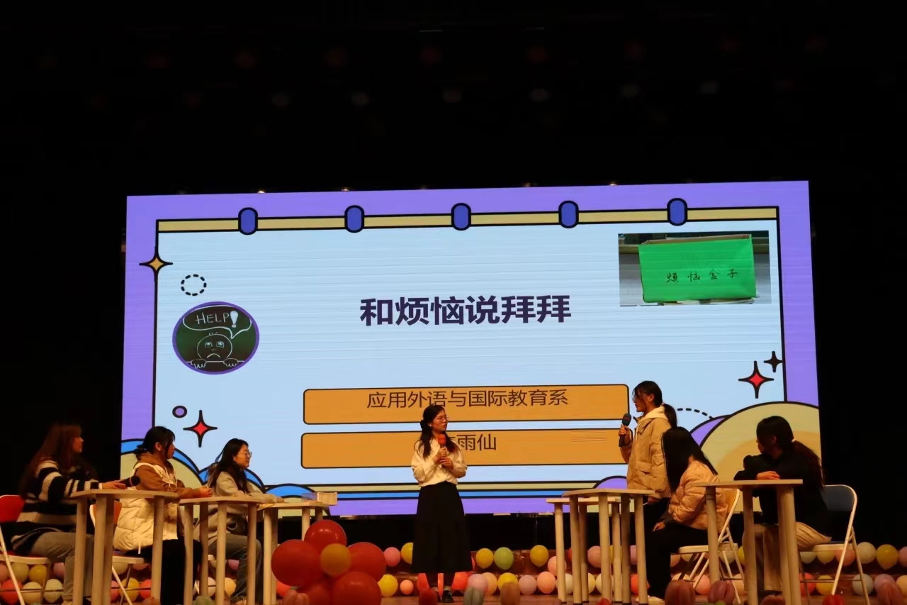 我系2023级小学教育3班许雨仙同学在心情绽放之“我型我秀-才艺展示”环节中通过心理情景剧《双面镜》呈现了一个容貌焦虑女孩的内心挣扎和自我救赎历程。旨在帮助大学生们意识到,在社会对外貌要求越来越严苛的情况下,陷入容貌焦虑后该如何找回真实的自我。在“心海遨游之锦囊妙计-情景问答”中,以真实生活和学习中的心理问题为出发点,凸显出班级心理委员做好辅导员教师和同学之间桥梁,解决心理问题的能力。在“心空翱翔之微班会展示-心理微班会”中,以《与烦恼说拜拜》为题,通过“烦恼盒子”道具为同学解决生活中、学习中的小烦恼,充分展示班级心理委员日常工作常态,彰显心理委员的重要作用。
