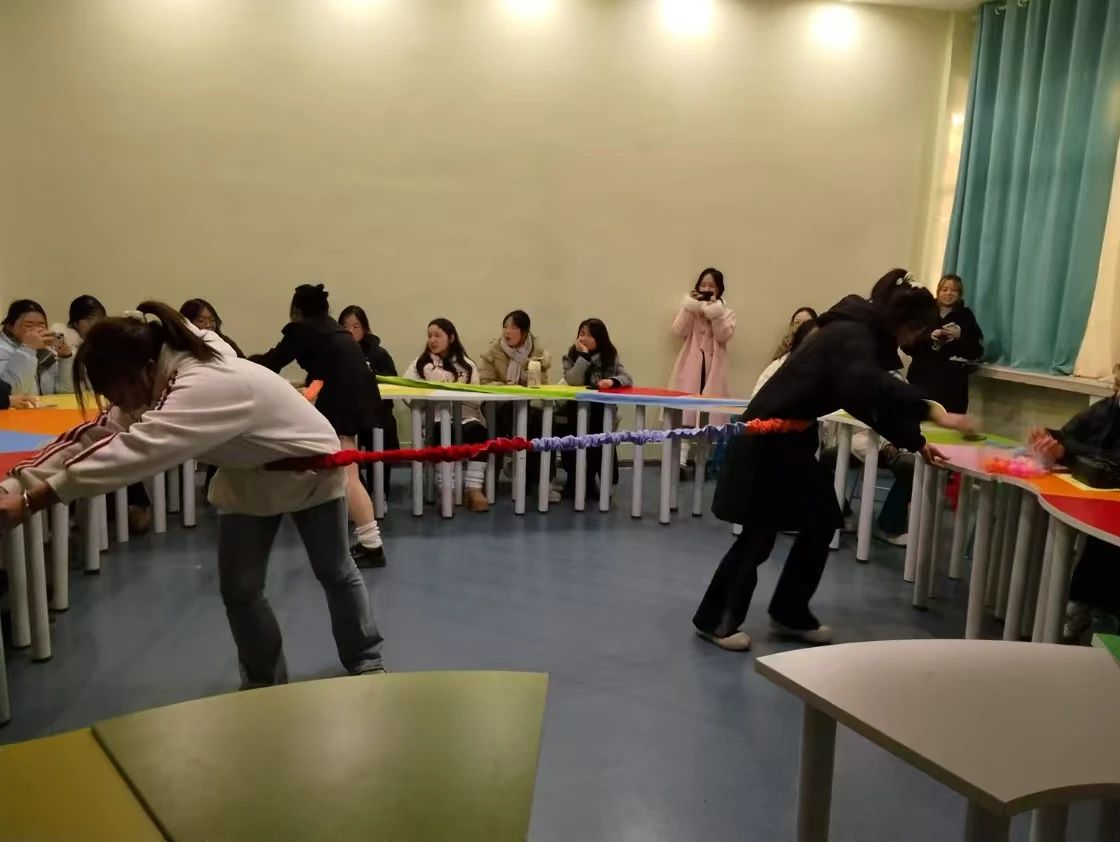 为了提升学生的人际交往技能,营造积极的团队氛围,以元旦为契机,帮助同学们缓解期末压力,丰富同学们的校园生活,12月27日下午,在系党总支的指导下,应用外语与国际教育系2023级和2024级心理委员,宿舍信息安全员及心协学生干部在校心理健康教育中心举办“元旦心协聚,心愿共飞翔”团体辅导活动。