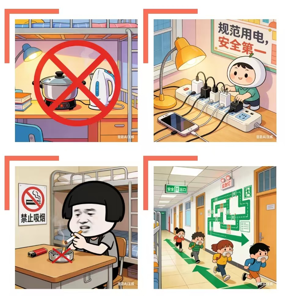 宿舍安全无小事,消防安全大于天。希望广大同学从自身做起,从现在做起,从细节做起,摒弃侥幸心理,远离违规行为,自觉抵制身边的不安全因素,积极参与宿舍消防安全管理。同学们要警钟长鸣,把“安全意识”内化于心、外化于行,共同筑牢宿舍消防安全防线,为建设平安校园、和谐校园贡献自己的力量。