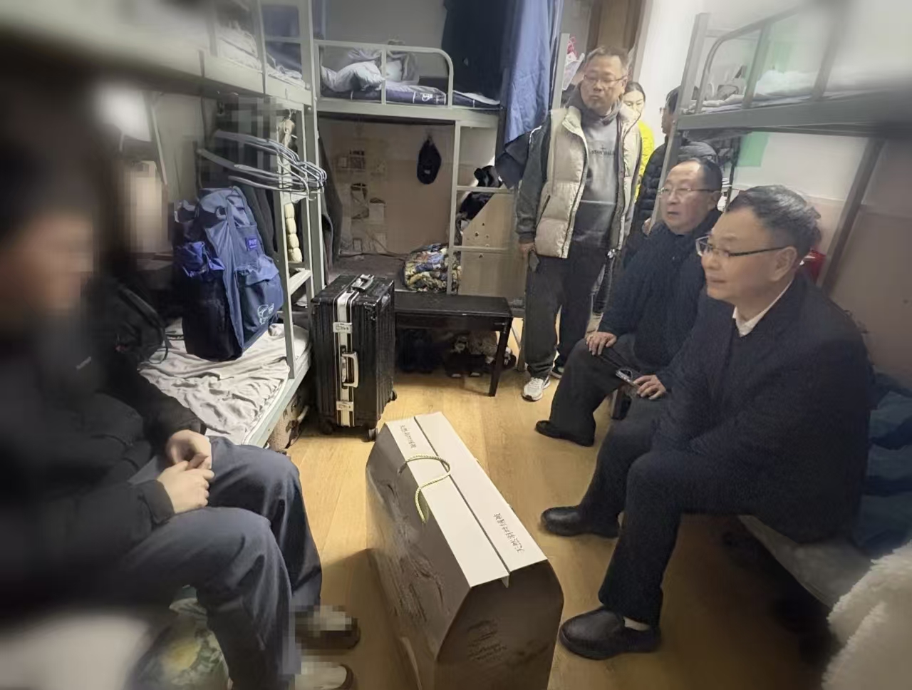 时值寒冬,暖意渐浓。为切实关心学生冬季在校生活,解决家庭经济困难学生的实际需求,近日,由学校党委委员、副校长朱晓红,tyc7111cc太阳成集团领导班子及辅导员组成的慰问小组,深入学生宿舍开展“冬季送温暖”活动,将学校的深切关怀送到每一位受助学生身边。