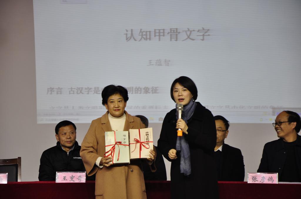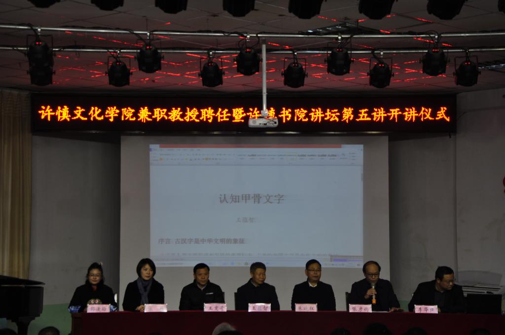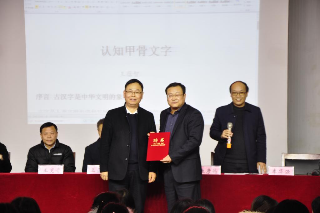 随后,许慎书院名誉院长、客座教授王蕴智以“认知甲骨文字”为主题开讲许慎书院讲坛第五讲。王蕴智先生是河南省特聘教授,河南大学教育部人文社科重点研究基地黄河文明与可持续发展研究中心教授,学术委员会委员、古汉字研究所所长、河南省文字学会会长,漯河市政府许慎文化研究与资源开发特聘顾问。他长期从事古文字与古代文明方向的教研工作,学术研究成果丰硕,是文字研究的大师,是许慎文化和许慎精神研究推广的积极倡导者和推动者,为我省建设文化强省和漯河市文化强市做出了突出贡献。