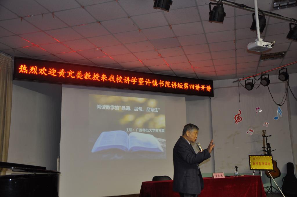 10月24日,许慎文化学院邀请广西师范学院研究员、中国高等教育学会全国字理教学研究中心理事长、我校兼职教授黄亢美先生来我校开展许慎书院讲坛系列讲座第四讲。许慎文化学院全体领导班子成员、语文教育教研室全体教师、语文教育专业200多名学生参加。