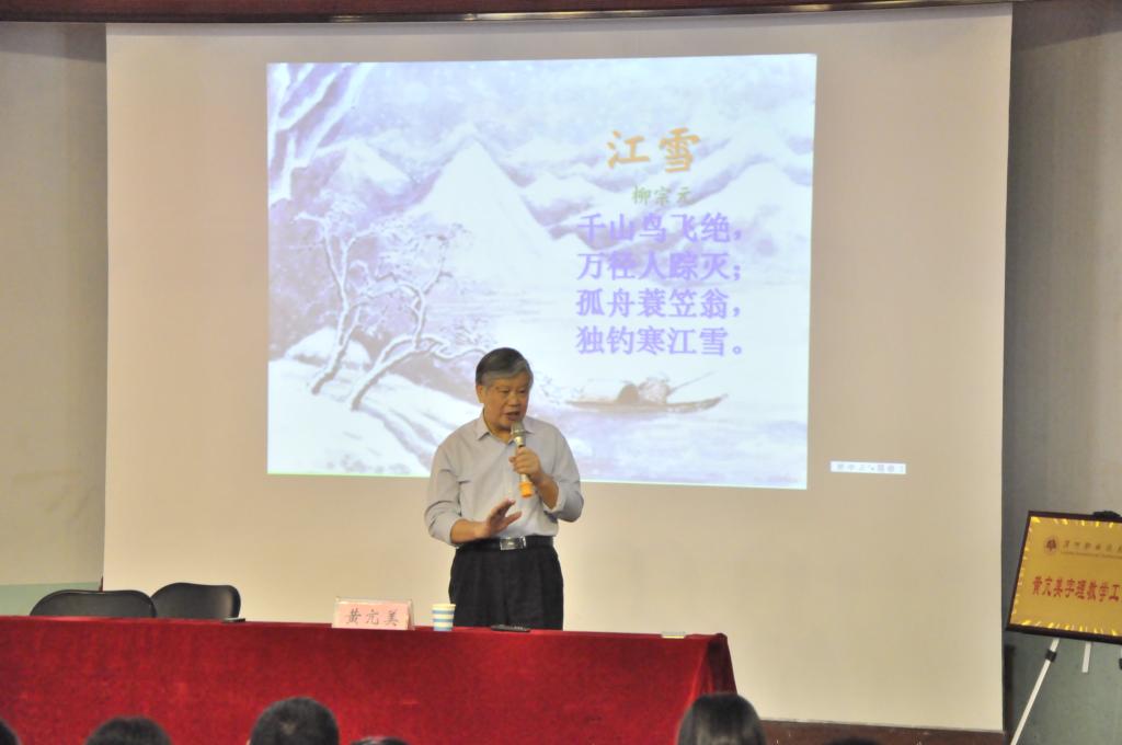 黄教授在此次系列活动中多次指出,中华优秀传统文化是中华民族的精神命脉,诗歌作为中华传统文化中重要的组成部分,近年来越来越受重视,许慎文化学院的同学们应该注重自身诗歌知识的积累,从格律诗的欣赏和写作做起,传承中华优秀传统文化。许慎文化学院的教师们应该将教学改革、科研方向与许慎文化结合起来,与中华传统文化结合起来,担负起弘扬中华优秀传统文化的重任。