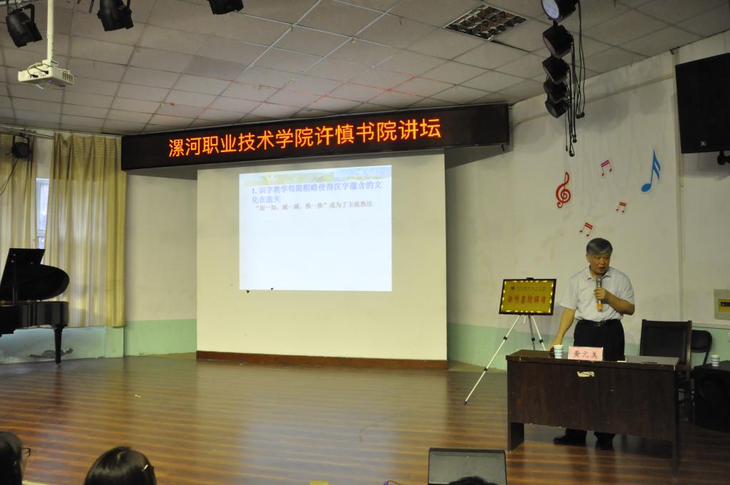 拜师仪式结束后,黄亢美教授围绕“让汉字启蒙教育更有文化”这一主题进行许慎书院讲坛第二讲,黄教授指出,汉字文化正在日渐复苏,我们要正视识字教学的现状,了解汉字构字的理据,科学地实施字理教学,“在识字教学中留住语文的根”。黄教授用声情并茂、幽默风趣、充满激情的语言为大家展示了中华汉字的独特魅力,针对现场师生的提问也进行了一一解答。