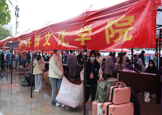6点10分的校园里,雨一直在下,迎新学生志愿者在老师的带领下早已准备就绪,按照各自分工开始了忙碌的迎新工作。为确保迎新工作的顺利开展,我院办公室为志愿者提供了500个口罩等防疫物资、160套雨衣,一百多名学生志愿者分别分配在新生接待处、行李转运组,宿舍引导组,在各个环节尽心为新生提供全面服务。迎新工作中,学姐学哥们积极主动为新生们介绍报到流程、帮助搬运行李,30多名2022级新生也志愿加入到迎新队伍中主动开展工作,他们的周到热情服务使2022级新生一进校门就感受到了集体大家庭的温暖,迎新工作也给新生同学和家长们留下了深刻印象。