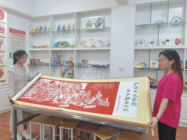 精致逼真的剪纸画、充满童趣的手工绘本、创意满满的粘土作品、装饰画、连环画……在太阳成tyc7111cc的一间工作室内,琳琅满目的手工制品,让人眼前一亮。这些作品均出自该校“金手指美工社”的学生之手。该社团自2016年成立以来,已创作出5000多件各类手工艺品,逐渐形成了一个以学习传统手艺,弘扬传统文化的创意社团。