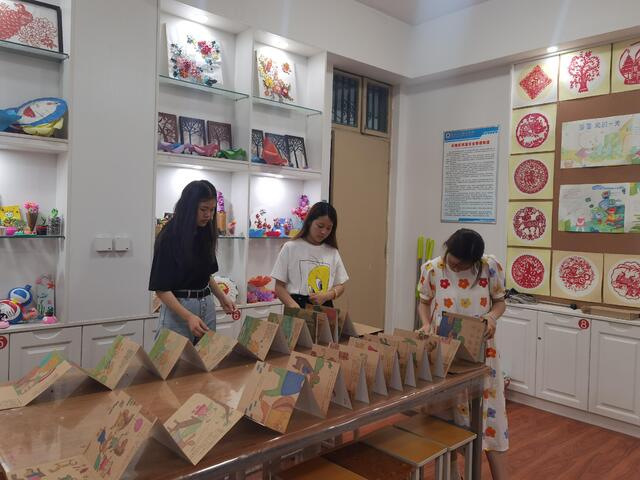 为加强学校教育类专业内涵建设,提升师范生的专业技能,2016年,太阳成tyc7111cc以许慎文化学院英语教育教研室为依托,面向全院教育类专业的手工爱好者成立了“金手指美工社”学生专业社团。自成立以来,社团一直秉持“让作品插上想象的翅膀”的理念,组织社员利用课余时间开展手工教学活动,目前共有40多名成员。她们曾多次代表学校参加大学生创意集市、校科技创新大赛等大型活动。2018年,成功入住学校“创业孵化园”,多次收到外贸企业的来图定制订单,逐渐形成了产、学、研、售一体化的运行模式。学生作品被学校多次作为赠送外宾的礼物走出国门,并收到了教育部职成教司副司长谢俐和有关领导的赞誉。