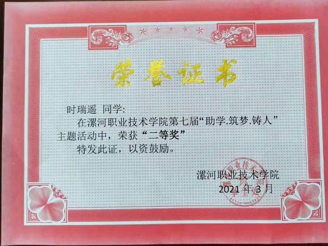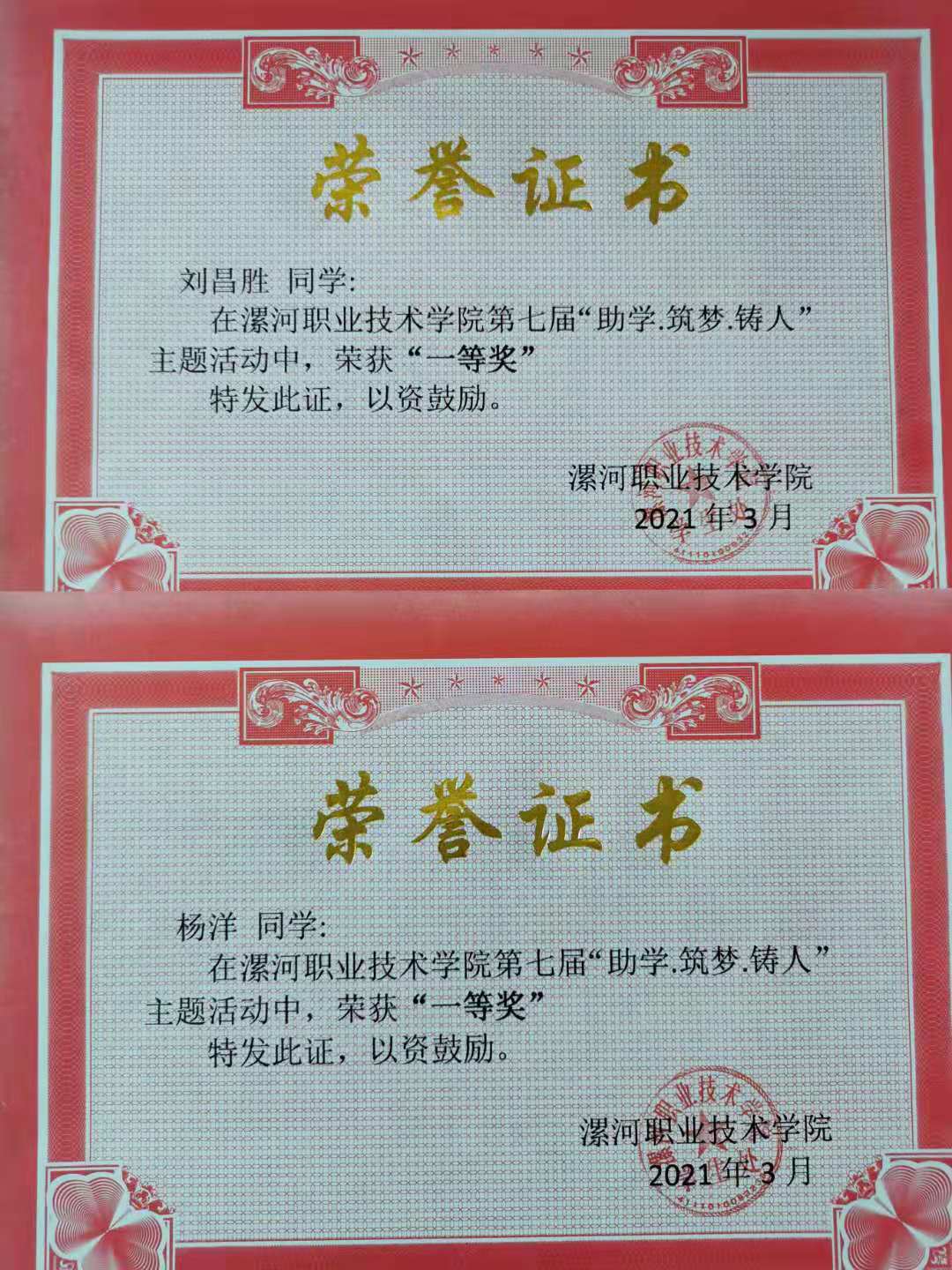 为大力宣传国家学生资助政策及成效,激励广大受助学生奋发自强、立志成才、感恩奉献,教育部全国学生资助管理中心、团中央青年发展部、中国银行、中国青年报社联合举办了第七届“助学·筑梦·铸人”主题活动,我院认真开展宣传活动,积极组织48名学生参加,通过参与短视频制作、图片设计或文字作品等形式,通过学校评选,我院刘昌胜、杨洋两名同学获得一等奖,时瑞遥同学获得二等奖,陈华清、崔阳阳等六名同学获得三等奖。