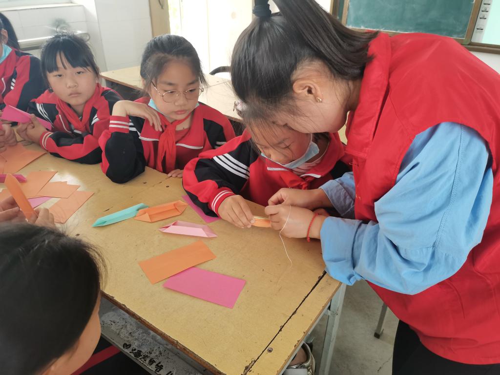 李珍珍老师给商桥镇中心小学二年级学生带来一节印象深刻的字理教学示范课,在课堂上传播许慎文化,讲解文字奥秘,激发了学生们探索文字的兴趣。许慎文化学院“”金手指美工社优秀学生党员单雨晨带领积极分子胡凯悦、王紫晗走进五年级课堂给学生们上了一节手工制作示范教学课。