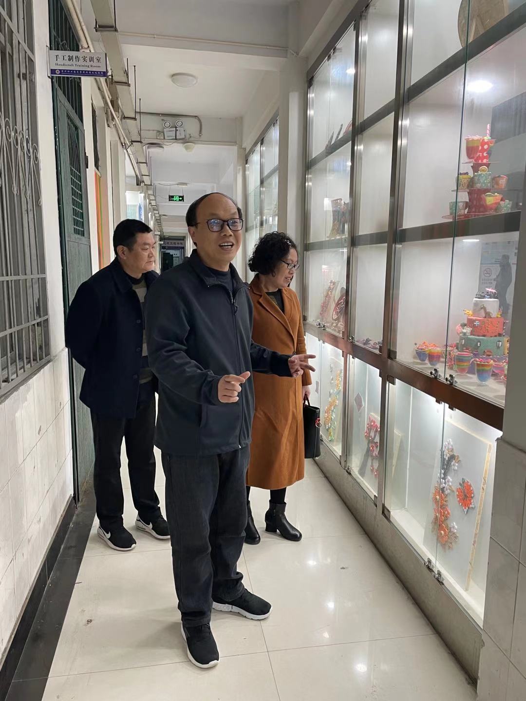 4月1日下午,平顶山职业技术学院数学系系主任白秋凤、党总支书记李中彬等一行三人来我校许慎文化学院考察交流小学教育专业建设。许慎文化学院院长张彦鸽、党总支书记寇槐花、副院长孟令超等接待了白秋风一行,首先陪同来访人员参观了学院实验实训设施、学生社团作品成果展等。