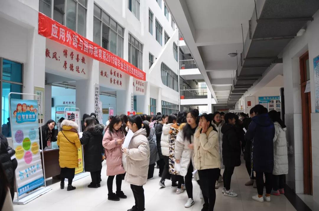 随后,应用外语与国际教育2019届毕业生师范类双选招聘会在三号楼大厅1:20正式开始,共有24家教育机构招聘单位,200余名师范类学生到场参会。