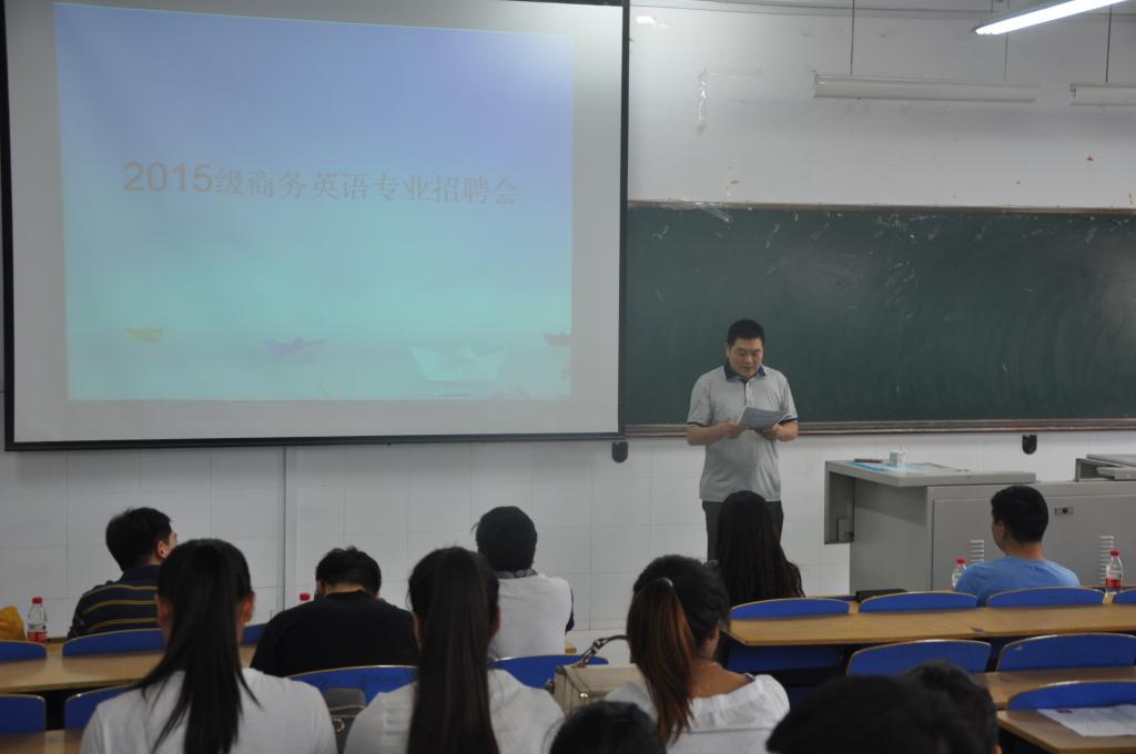 2017年6月12日、6月15日下午3:00,应用外语与国际教育系在三号教学楼3703、3201多媒体教室分别举行2015级英语教育、学前教育、商务英语专业教学顶岗实习双选会。禹州市文殊宏升学校、汝州新概念学校、北京红火轮教育集团、登封世纪星幼儿园、郑州福瑞德英语、临颍爱华英语学校、漯河新概念英语学校,以及宁波六合环宇有限公司、漯河众丝源工艺品有限公司、深圳鑫广宏商贸公司等教育类机构和跨境电子商务企业25家的合作企业领导、应用外语与国际教育系主任张彦鸽、党总支书记田玉芝等班子成员、教研室骨干教师、辅导员和2015级各专业学生200多人参加双选会。双选会由应用外语与国际教育系副主任孟令超主持。