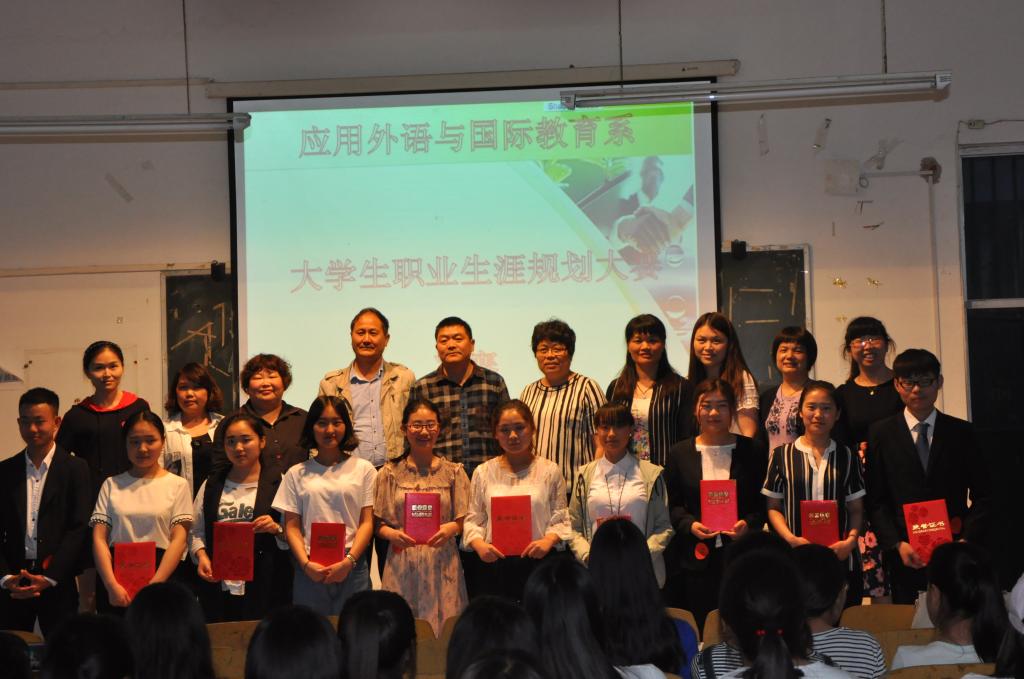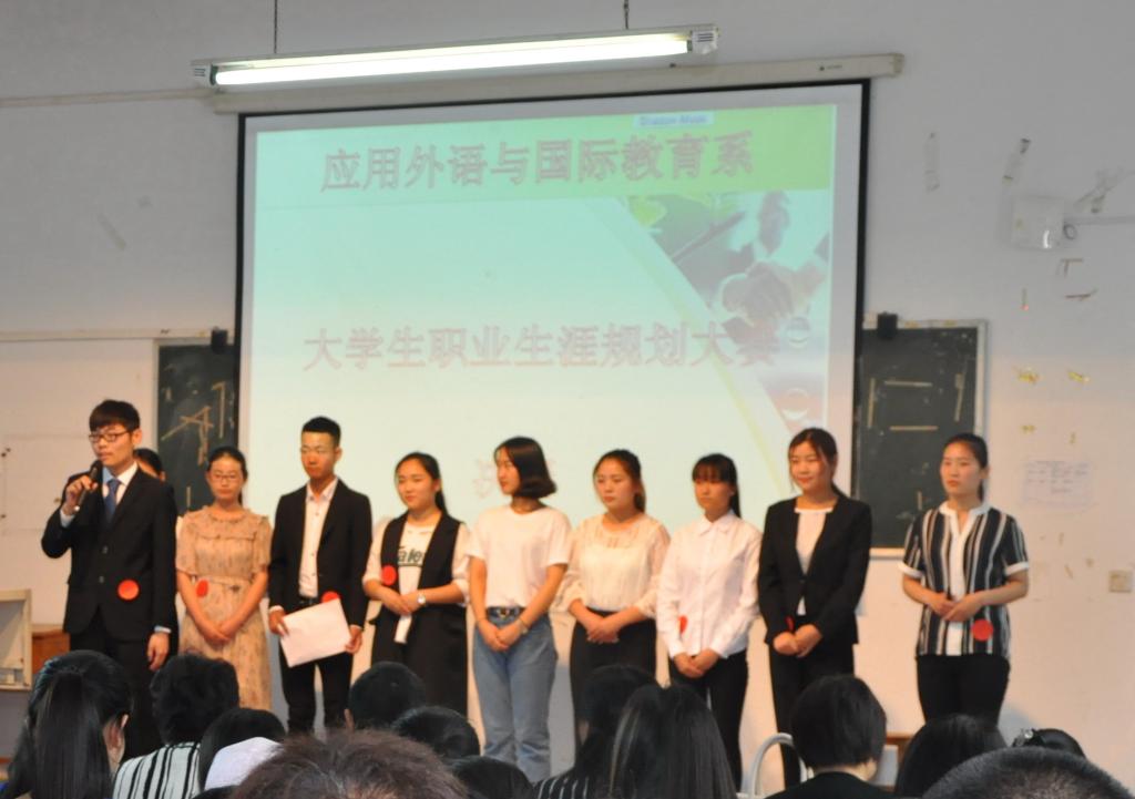 5月11日下午4:30应用外语与国际教育系在3701多媒体教室举行第六届职业生涯规划规划比赛,系党总支书记田玉枝、副主任吕红梅、孟令超和各教研室主任及全体辅导员到场并担任此项大赛的评委,参加比赛的共有10名选手,2016级各专业的200多名学生代表观看了比赛。