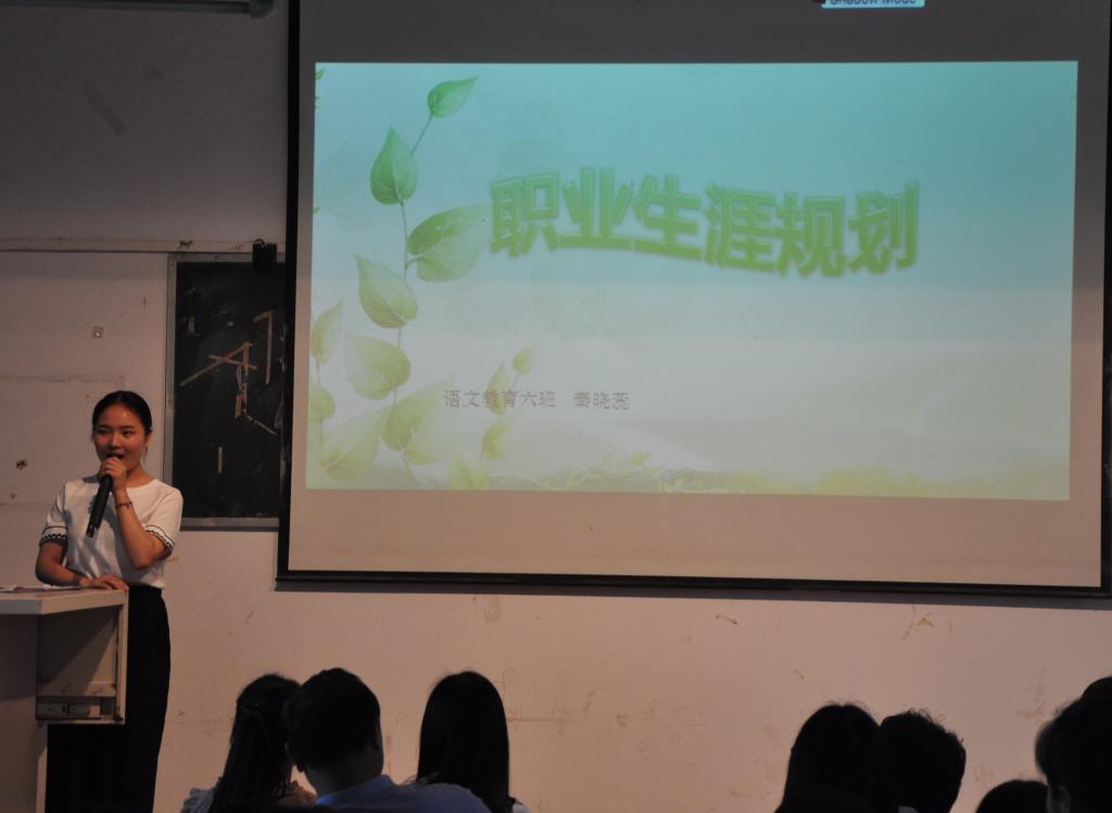 应用外语与国际教育系非常重视此项比赛,前期经过了积极地准备,由自己报名、班级初赛推荐和系部复赛等形式,选出10名选手参加最后的决赛。决赛分职场第一印象展示和现场演讲作品展示两个环节。尤其是在第二环节中每个选手分别用精心准备的课件现场演讲展示对自我认知、职业认知和职业生涯规划目标和实施方案等内容。比赛中学生整体作品内容设计层次清晰,关键点提炼准确,综合分析到位;选手们演讲的语言或慷慨激扬或娓娓道来,风格不一,各有千秋。在决赛结束后担任职业生涯规划课程的吕红梅老师和英语教育专业教研室主任张晓霞老师分别从就课件制作和课程要求及比赛的总体情况做了精彩点评。