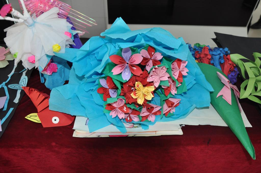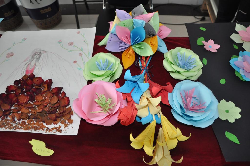 第三是由我院金手指美工社团的成员在大厅设置服务台,教女生们折玫瑰花,女士们非常积极参与,其成员细心教练。女生们带着自己亲手折好的玫瑰花回去,带回去的不仅仅是漂亮的花,而是她们在女生节获得的快乐与幸福。