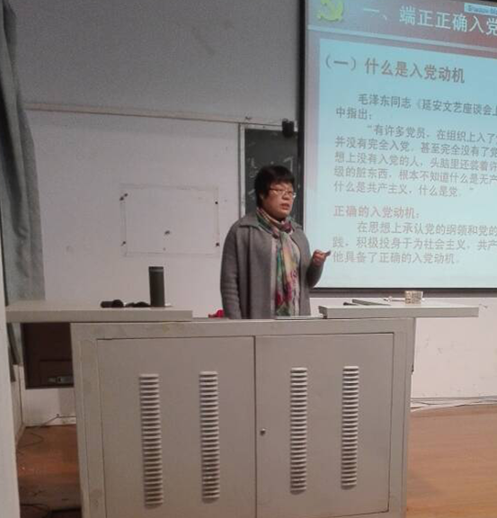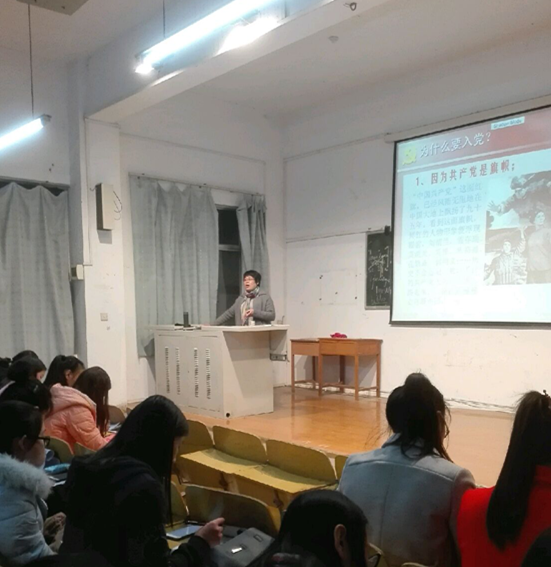 本次培训课由应用外语与国际教育系党总支书记田玉枝主持,培训的主题为“争取早日成为合格的共产党员”。首先,系田书记介绍了培训班的基本情况,希望积极分子能够珍惜这次来之不易的机会。课程的内容分为增强全心全意为人民服务的观念、坚持开阔创新和艰苦奋斗、在作风上保持先进性、及共产党员应尽的责任和义务。田书记又从个人与群众的关系引出社会主义价值观的三个层次即国家、社会、个人,深刻的解读了社会主义核心价值观和八荣八耻,要求在校大学生要学好专业文化知识,加强素质建设,争取做一个德智体美全面发展的社会接班人。最后田书记将自己在入党以来的历程分享给每一位积极分子。8点30分入党积极分子培训课在热烈的掌声中结束。