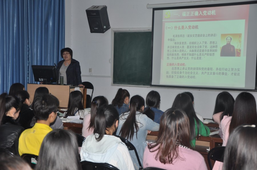 4月7日下午,应用外语与国际教育系在3号楼3510教室对38期入党积极分子进行党课培训,系党总支书记田玉枝以“端正入党动机,争取早日加入中国共产党”为主题,为参训学员上了一堂别开生面的党课。