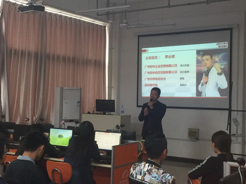 3月30日下午2:30,经漯河市郾城区商务局介绍,应用外语与国际教育系特邀广州阿中商学院常务副院长姚志强先生及广州阿中商贸发展有限公司执行董事罗永增先生在2号实训楼2611网络贸易实训室举办了一场校企跨境电商大学生创业创新项目实习指导讲座。本次实习指导讲座,旨在鼓励我系商务英语专业(跨境电子商务方向)学生大胆创业,激发学生创业创新潜质,为学生提供经验交流、资源共享的学习机会。应用外语与国际教育系主任张彦鸽、副主任孟令超、商务英语教研室全体教师及我系2015级商务英语专业(跨境电子商务方向)全体学生参加本次讲座。