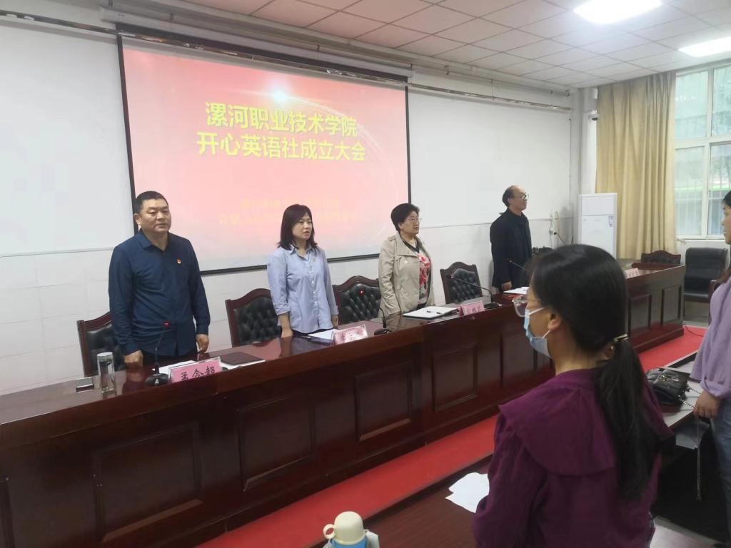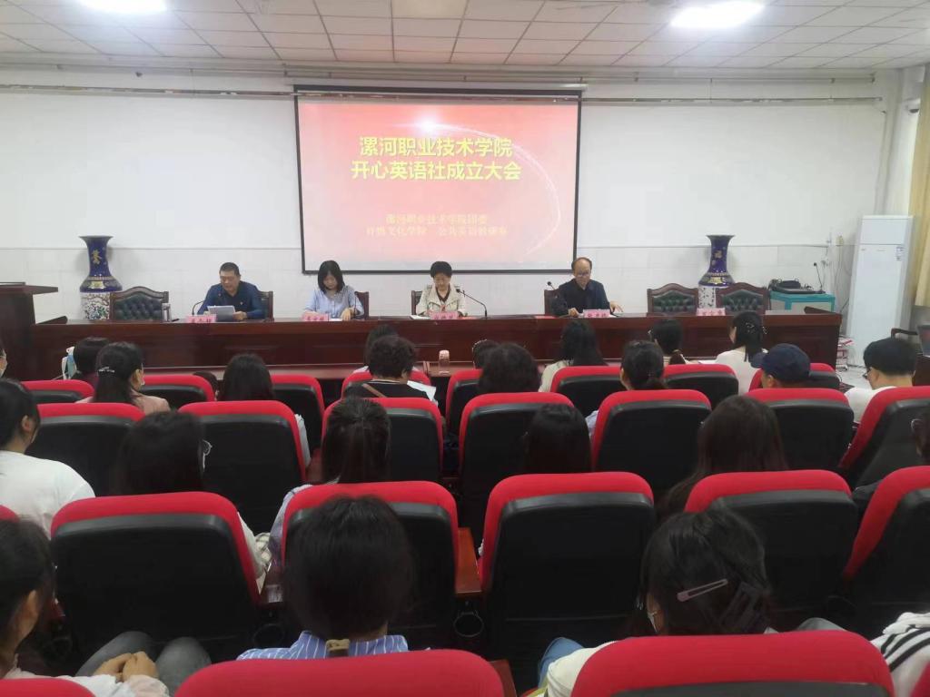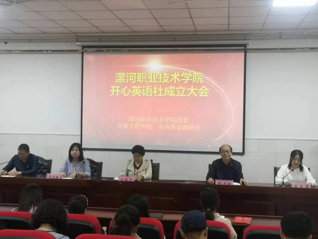 在学校党政领导的指导下,经过公共英语教研室教师和社团学生2个多月的充分酝酿,精心筹备,5月26日下午,应用外语与国际教育系(许慎文化学院)在3号楼3101会议室隆重举行太阳成tyc7111cc开心英语社成立大会。学校团委办公室主任李方媛、应用外语与国际教育系(许慎文化学院)主任张彦鸽、系党总支书记寇槐花出席成立大会,应用外语与国际教育系(许慎文化学院)各教研室主任(负责人)、实训室主任以及公共英语教研室、英语教育教研室、商务英语教研室全体教师和开心英语社成员及全院学生代表150多人参加大会。会议由应用外语与国际教育系(许慎文化学院)副主任孟令超主持。