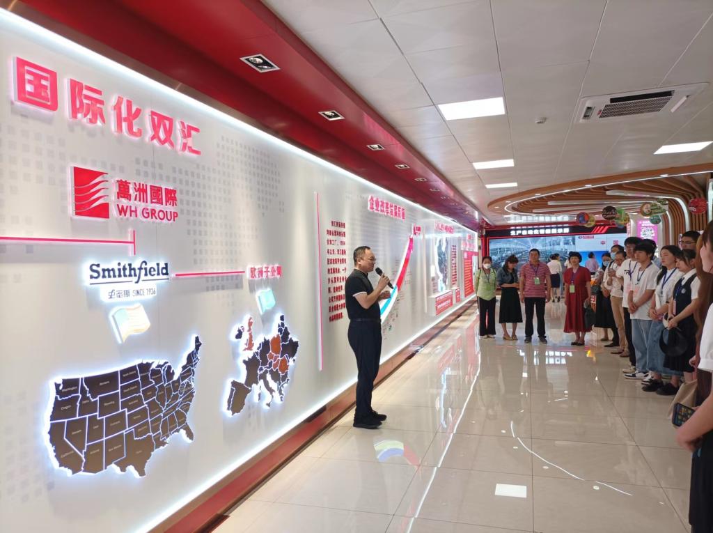师生先后进入河南双汇投资发展股份有限公司、卫龙美味全球控股有限公司、漯河市澳源集团,进入生产车间、产品展示区、外贸部等部门,通过参观学习、公司经理讲解、与外贸业务员交流,了解公司系列产品种类、生产流程、出口平台、外贸业务流程等内容。双汇集团先进的生产线、干净整洁的环境、高效的生产流程、骄人的外贸业绩给师生留下了深刻的印象。在卫龙美味全球控股有限公司,师生参观生产流程、听取公司领导企业文化介绍,对高度自动化的生产流程和增长迅猛的出口规模都表示钦佩不已。在漯河澳源集团外贸部,快速增长的外贸业务规模、60多名外贸业务员争创一流业绩的感人氛围使师生深受感染。在听取公司总经理袁海燕女士和公司外贸平台运营主管王莉红女士的企业外贸形势介绍和外贸业务员招聘条件介绍后,学生纷纷表示愿意毕业后加入外贸行业,将更多的中国制造、漯河制造产品出口海外。三家企业欢迎同学们完成学业毕业后到公司实习就业。