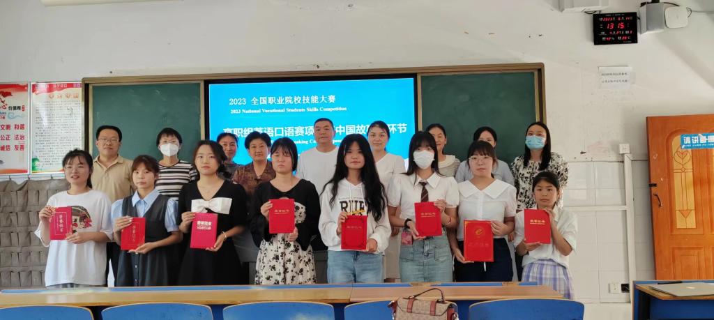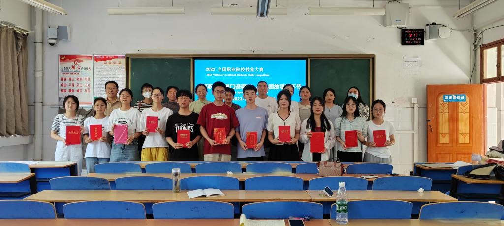 全国职业院校技能大赛英语口语赛项分为“中国故事”“情景交流”“职场描述”“职场辩论”四个竞赛环节,全面考查学生在职场涉外情境中的语言综合运用能力和完成典型工作任务能力,同时体现文化内涵、国际视野、职业精神、思辨能力等综合素养。本次“中国故事”环节中,要求参赛学生现场从十个主题的“中国故事”中抽取一个主题,用英语讲述中国故事。经过激烈角逐,评委组依据省赛评分标准,根据选手现场综合表现,评选出公共组、专业组一等奖2名、二等奖5名、三等奖11名。决赛结束后,系副主任孟令超对选手表现进行简要点评,并对下一步备赛提出了具体要求,评委老师、指导教师和获奖选手合影留念。
