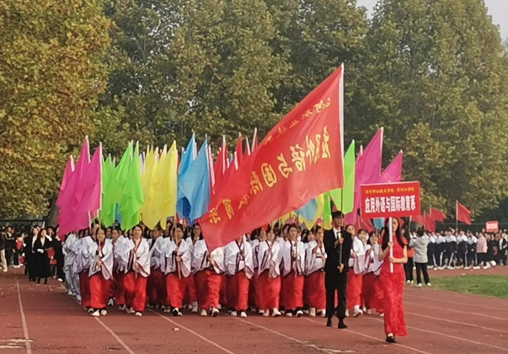 上午8点整,开幕式在校西操场举行。伴随着激昂的运动会进行曲,气势昂扬、各显特色,各系部学生、教师方阵进场,彰显朝气蓬勃的精神面貌,带来精彩绝伦的方阵表演。应用外语与国际教育系(许慎文化学院)方阵更是其中一道亮丽的风景线,由师生代表组成的方阵,昂首阔步,整齐划一,脸上洋溢着笑容,走向主席台。步伐矫健,精神抖擞,展现了我系师生的必胜信念和勇于拼搏的体育精神。