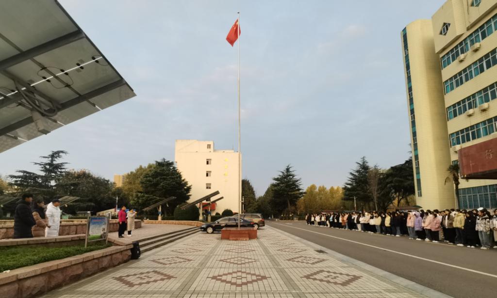 11月13日上午7时,应用外语与国际教育系(许慎文化学院)在校行政楼前举行升国旗仪式。系党总支书记寇槐花、副书记吕红梅、系全体教师、2023级全体学生参加了本次升国旗仪式。
