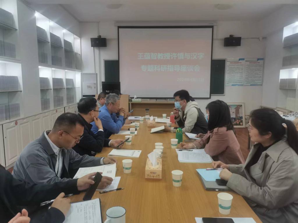 会上,朱晓红副校长首先对王蕴智教授的到来表示热烈欢迎,并简要介绍了学校近期许慎文化相关工作的进展情况、阶段性成果以及未来发展的思路规划。他表示,学校将会大力支持许慎文化传承传播人才队伍建设,同时借助汉字文化节向社会全方位展示语言文字推广基地建设的具体行动。希望青年教师能够明确工作方向、细化研究内容,在王蕴智教授的带领下,努力将许慎文化学院建设成为弘扬汉字文化、传承许慎精神的重要基地。