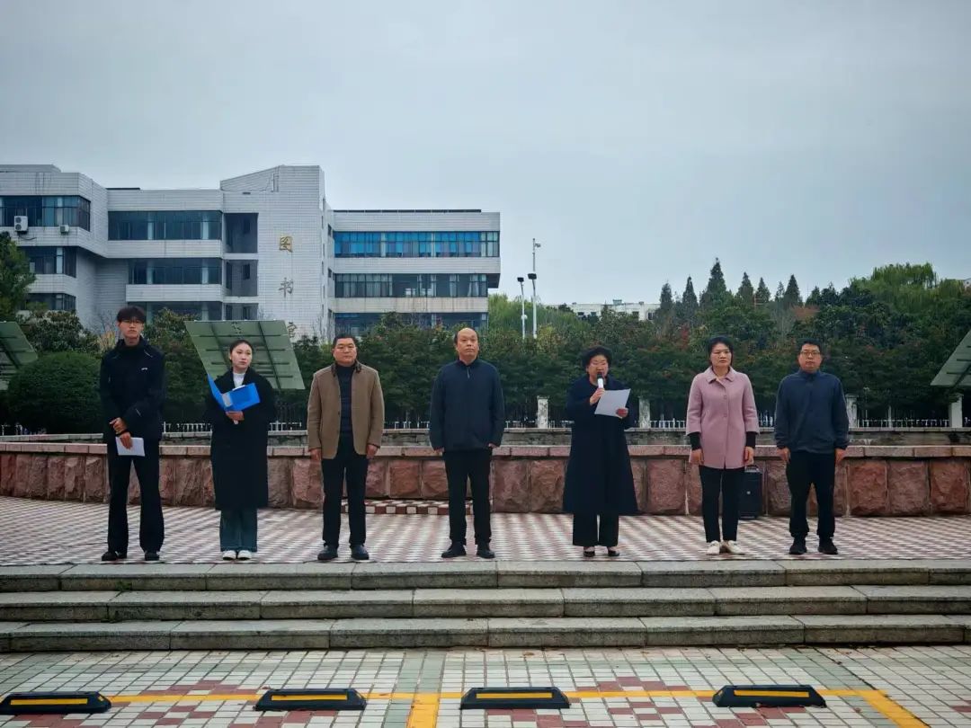 11月18日上午7时,应用外语与国际教育系(许慎文化学院)在校行政楼前举行升国旗仪式,系全体教师和2023、2024级全体学生参加了本次活动。