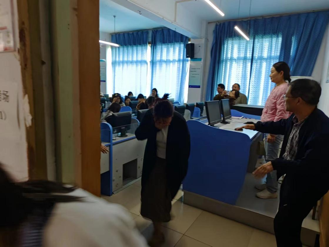 11月5日下午3时,演练正式启动。随着模拟火情警报声响起,各个实训教室辅导员迅速组织学生用手帕、毛巾捂住口鼻,弯腰低姿沿预设疏散路线快速撤离。在此过程中,楼层值守教师全程引导,严格把控楼梯转角、出口等关键节点,避免拥挤碰撞;学生有序列队、动作迅速,仅用3分钟便全部撤离至实训广场指定安全区域,各班级随即清点人数并上报,实现“零遗漏、零失误”。