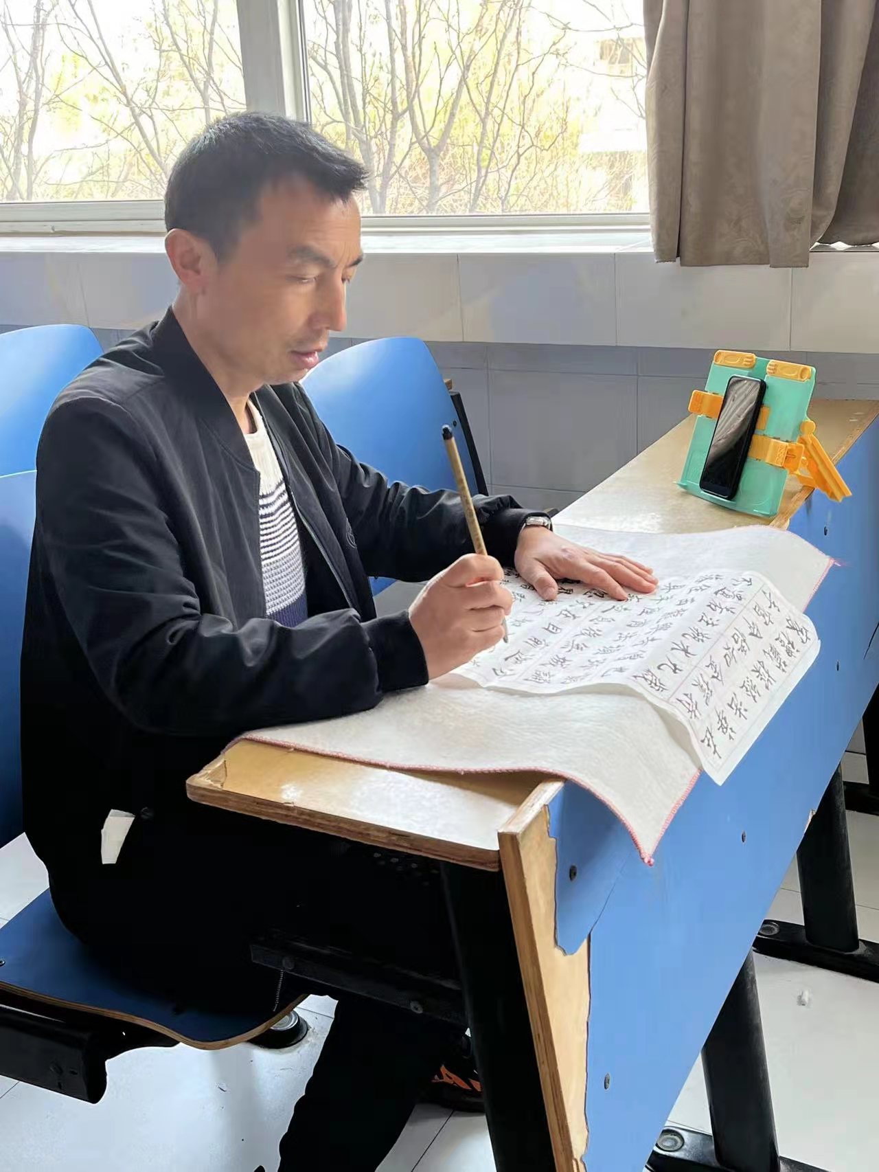 作为专业教师,他不但注重学生书法专业技能的培养,而且注重将德育教育同课程结合起来,将中国优秀传统文化融入课堂,课程思政教学效果显著。同时,还经常利用自己的业余时间对兰亭书画协会的会员做书法练习指导、组织协会开展“抗疫书法作品比赛”等活动。