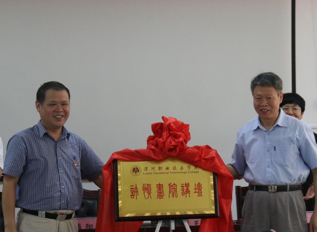 聘任仪式结束后,王春阳校长和许慎文化学院名誉院长王蕴智教授共同为我校新设立的“许慎书院讲坛”揭牌,并由王蕴智教授以《谈谈中原地区汉字文化资源的保护和开发》为题进行“许慎书院讲坛”第一讲。