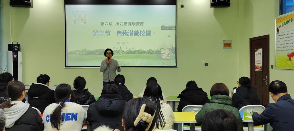 为进一步提升我校《大学生心理健康教育》课程师资队伍的专业教学能力,1月2日,河南省心理学会常务理事兼体验心理学专委会主任徐慧玲教授应邀来我校做了题为《自我潜能挖掘》体验式心理学课程示范教学,我校心理健康教育教研室教师、心理咨询中心教师、辅导员代表、心理健康教育专业学生代表及应用外语与国际教育系领导班子成员共四十余人参加。