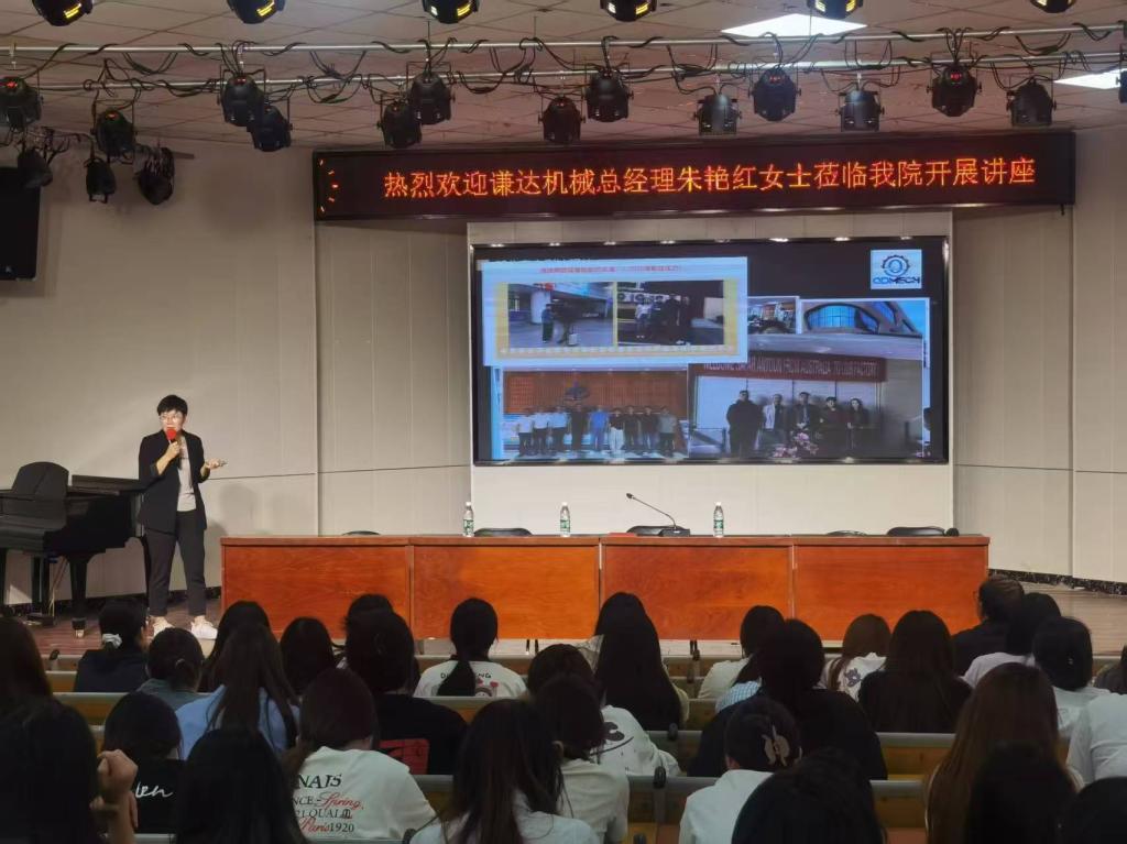 4月23日下午,许慎文化学院成功举办"外贸行业发展趋势与职业机遇"专题讲座。活动特邀河南谦达机电设备有限公司资深经理朱艳红担任主讲,为2023级、2024级商务英语专业210余名师生带来一场理论与实践并重的行业盛宴。许慎文化学院张彦鸽院长为朱艳红经理颁发商务英语专业企业导师聘书。