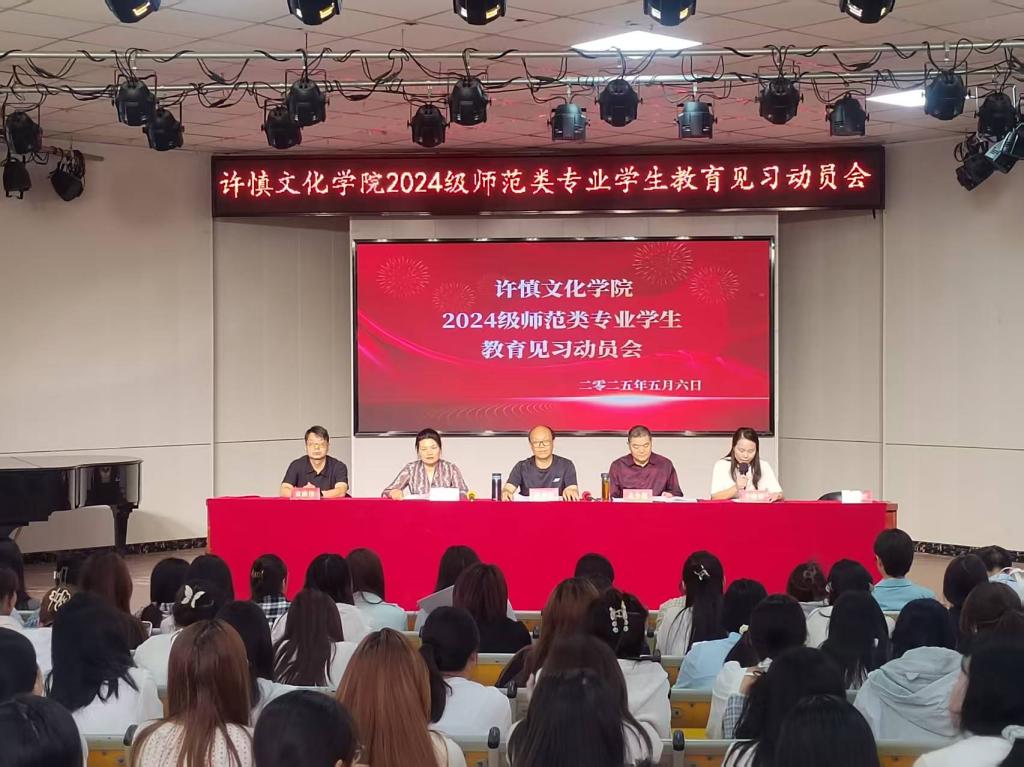 为深化教育教学改革,强化师范生实践能力培养,助力学生实现从课堂到讲台的角色转变,5月6日下午17:00和18:00,我院在学校小礼堂分两场召开2024级师范类专业学生教育见习动员大会。院长张彦鸽教授、副院长孟令超教授、党总支副书记吕红梅副教授、团总支书记袁海伟老师等院领导班子、各师范类专业教研室主任及负责人、全体教育见习指导老师、辅导员、2024级小学英语教育、小学语文教育、小学教育、心理健康教育等师范类专业374名同学参加会议,会议由院办公室主任李晓静主持。