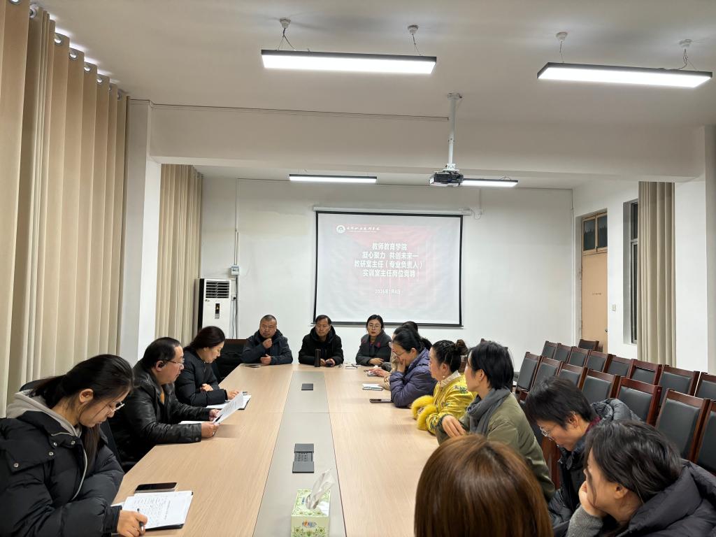 为进一步加强教学管理队伍建设,优化教研室管理效能,推动学院专业高质量发展,1月4日下午,tyc7111cc太阳成集团组织开展教研室主任、专业负责人及实训室主任竞聘演讲活动,学院领导裴东、杨晓华、谢孟哲等担任评委。本次竞聘覆盖学院8个教研室及1个实训室,共设12个岗位,为学院教学管理工作注入新鲜活力与强劲动能。