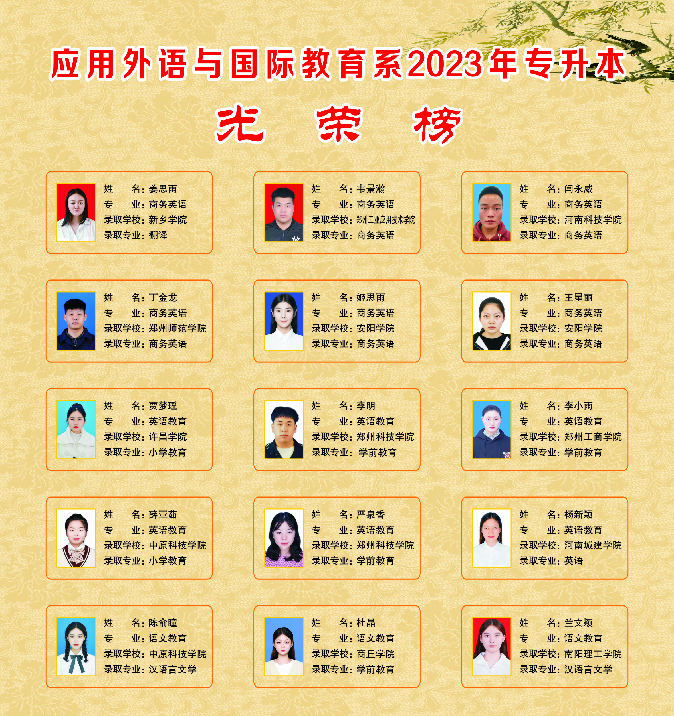 应用外语与国际教育系(许慎文化学院)2023年度专升本光荣榜