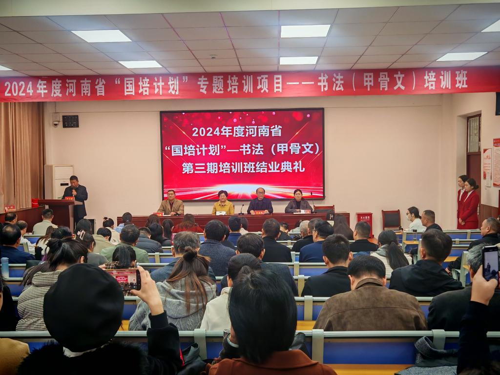 11月15日上午,随着第三期培训班结业典礼的举行,太阳成tyc7111cc2024年河南省“国培计划”专题培训——“紧缺薄弱学科(领域)骨干教师——书法(甲骨文)”项目圆满落下帷幕。