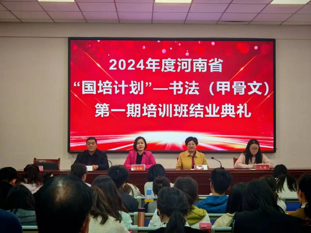 至此,2024年河南省“国培计划”专题培训——“书法(甲骨文)”项目第一期培训班圆满结束!下一步,学院将继续弘扬许慎精神,传承汉字文化,增强文化自信,提升文化软实力;深入总结,优化模式,为接下来培训项目的开展积累经验。