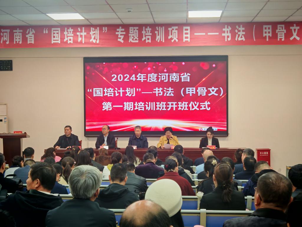 10月28日上午,2024年度河南省“国培计划——书法(甲骨文)项目”培训班第一期开班仪式在学校2107会议室隆重举行。河南省文字学会名誉会长、中国古文字学会理事、许慎文化学院名誉院长王蕴智教授,古文字学博士后、淮北师范大学钱磊老师,河南大学古文字学在读博士李会林老师出席仪式。许慎文化学院党总支书记寇槐花、院长张彦鸽、副书记吕红梅、负责国培项目管理与服务的班主任老师及来自全省各地的学员参加了开班仪式。仪式由许慎文化学院副院长孟令超主持。