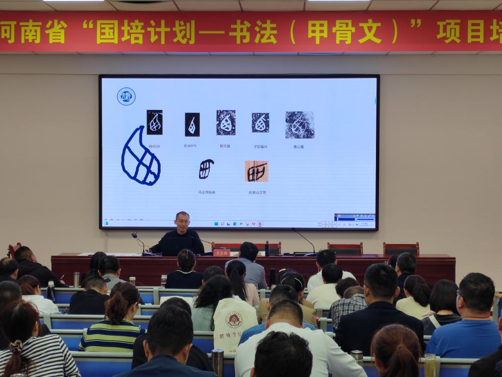 10月23、24日,河南省文字学会会长、中国古文字学会理事、许慎文化学院名誉院长王蕴智教授就“古汉字结体特征”与“甲骨文经典片”两个主题为参训学员带来了一场古汉字盛宴。