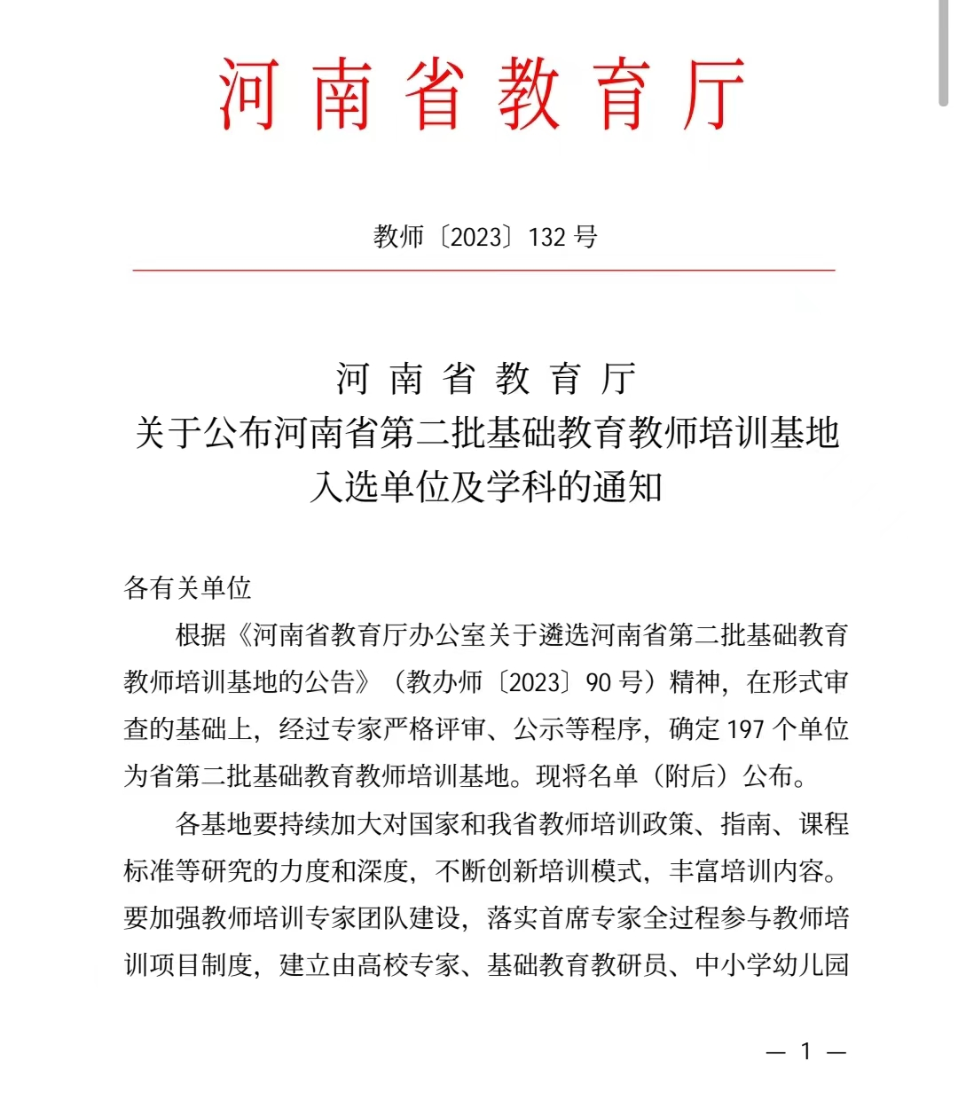 近日,河南省教育厅印发《关于公布河南省第二批基础教育教师培训基地入选单位及学科的通知》(教师[2023]132号),太阳成tyc7111cc许慎文化学院团队申报的学科“书法(书法教育)书法(甲骨文)”成功入选。