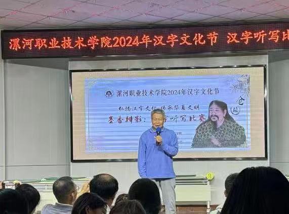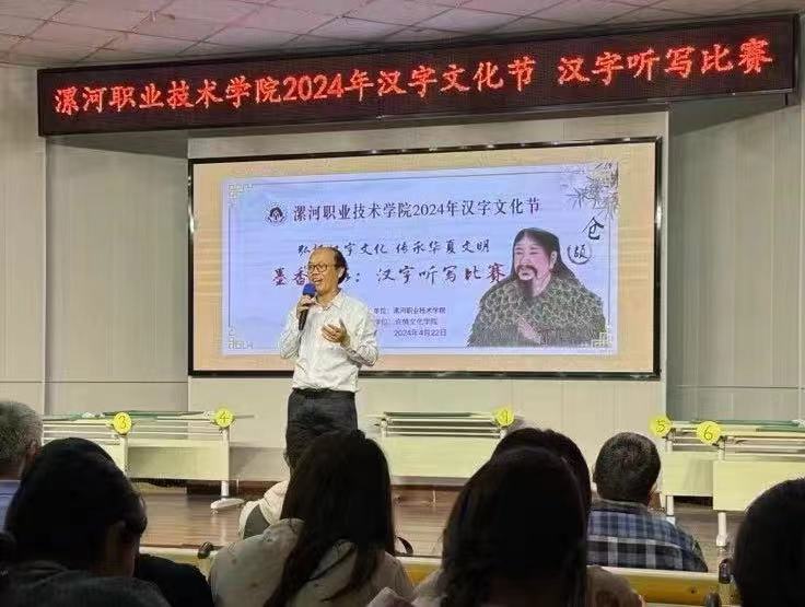 4月22日,太阳成tyc7111cc2024年汉字文化节系列活动之汉字听写大赛在音乐系小礼堂成功举办。许慎文化学院名誉院长、河南省文字学会名誉会长、河南大学博士生导师王蕴智教授、应用外语与国际教育系(许慎文化学院)主任张彦鸽、党总支书记寇槐花、副主任孟令超出席了此次大赛,2022级小学语文教育、小学教育专业200多名师生现场观赛;大赛评委由河南大学李会林博士、语文教育教研室主任宋琦以及语文教育教研室专业教师梁仲瑜、孙健男教师担任。