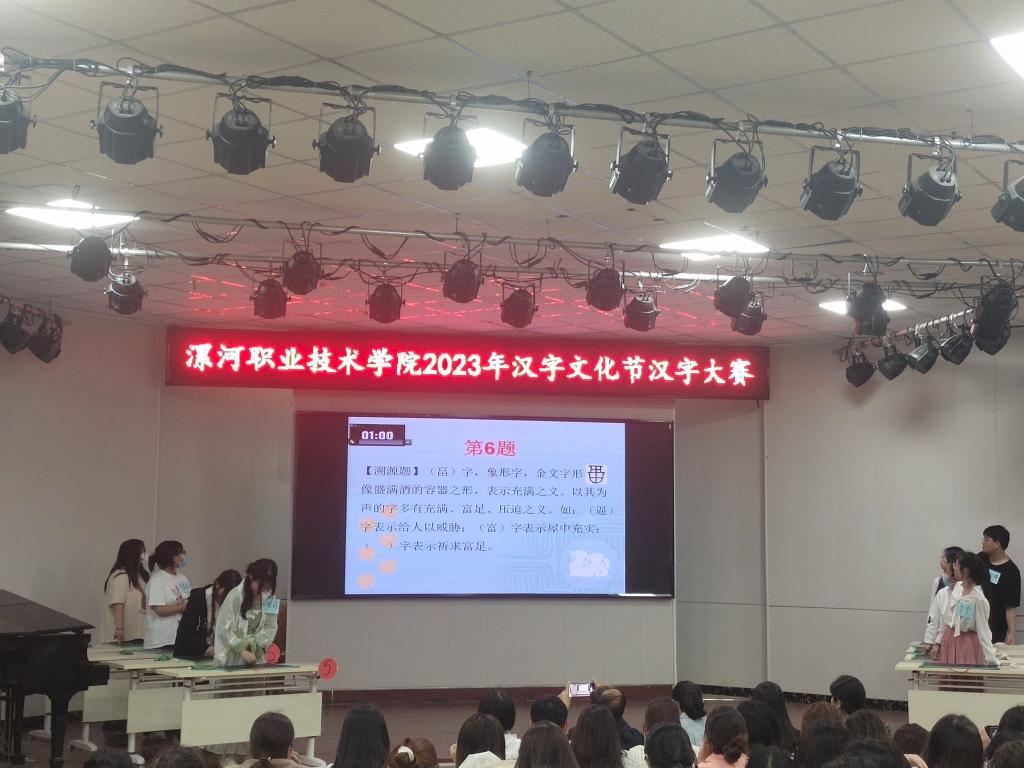 雨生百谷、润物无声,4月20日谷雨,按照太阳成tyc7111cc2023年汉字文化节活动方案,许慎文化学院联合教务处在音乐系小礼堂成功举办了汉字大赛决赛。许慎文化学院院长张彦鸽、公共英语教研室主任李瑞玲出席了此次大赛,许慎文化学院170多名师生现场观赛;大赛评委由语文教育教研室孙晓芳、王智丹和赵鑫彦三位教师担任。
